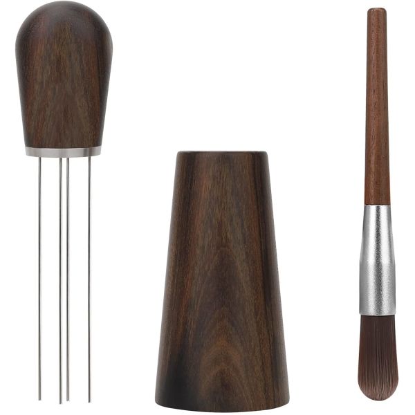 Natural Wood Handle Needle Distributor with Wood Stand Espresso Coffee Stirrer